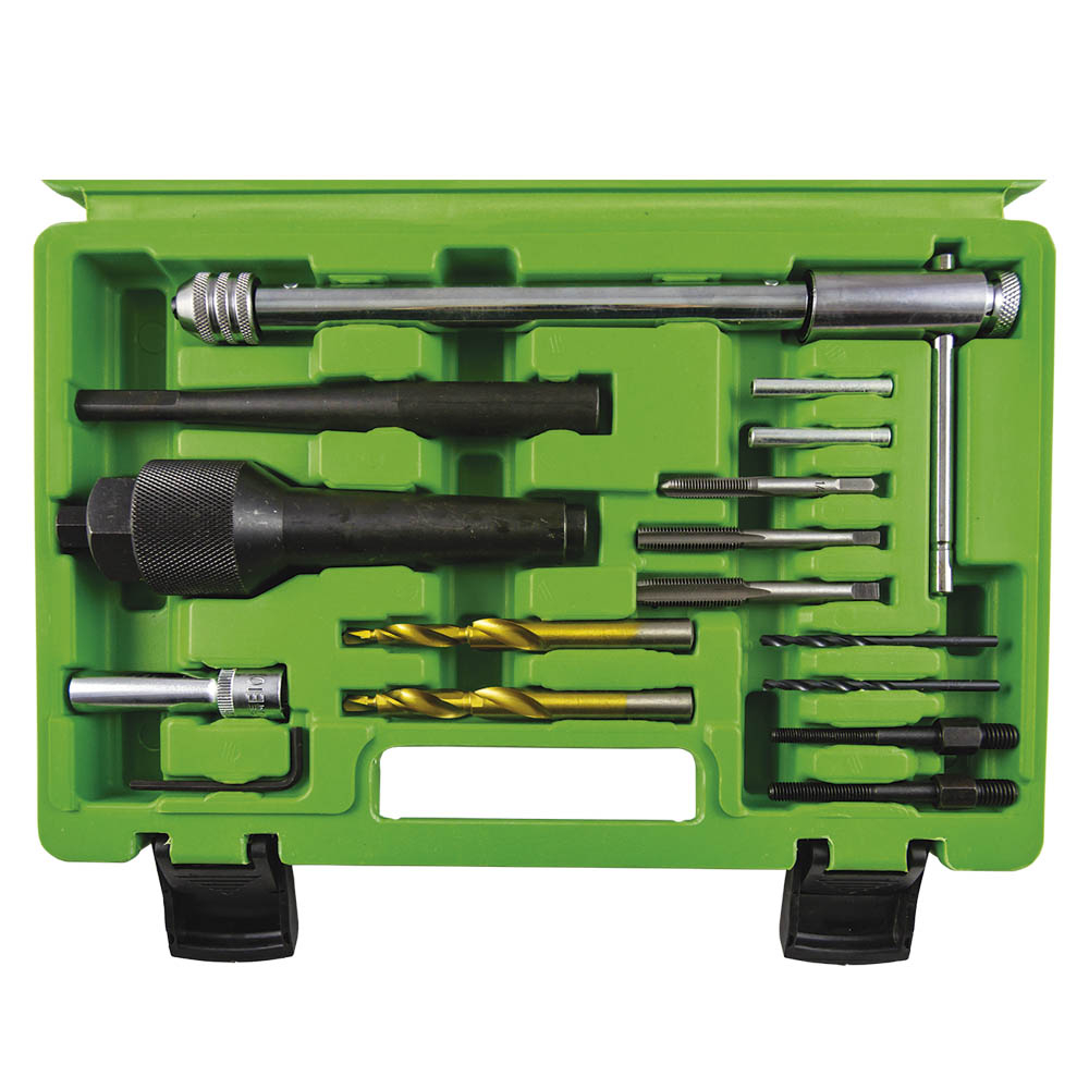 Inclui machos para rosca 1/4" M8 e M10 e broca de alta resistência de duplo tamanho M8 e M10.