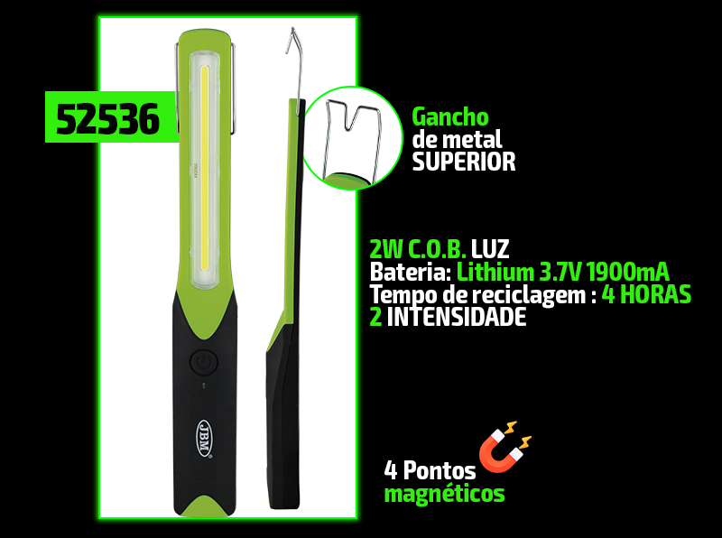 LANTERNA / GAMBIARRA JBM EXTRA PLANA COM LED COB RECARREGÁVEL 52536