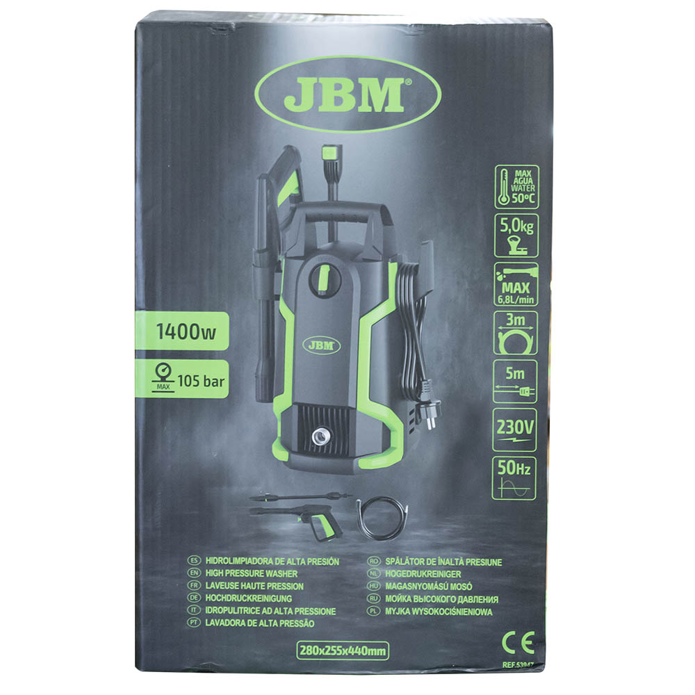 Esta lavadora de alta pressão com motor de 1400 W é ideal para limpar bicicletas, carros, equipamentos externos, pátios, terraços, paredes, estufas e muito mais.