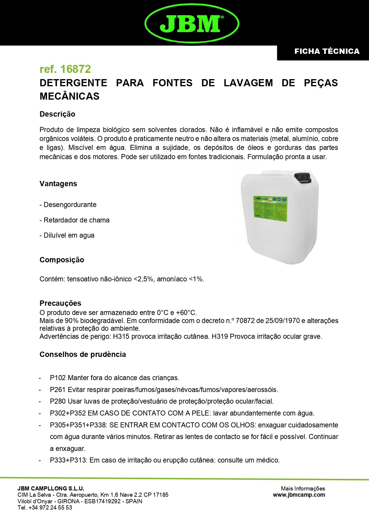 Vantagens ✓ Solúvel em água ✓ Aplicações múltiplas ✓ Respeitador de vedações e borrachas ✓ Contentor de grande capacidade 20L