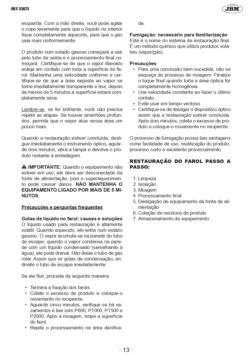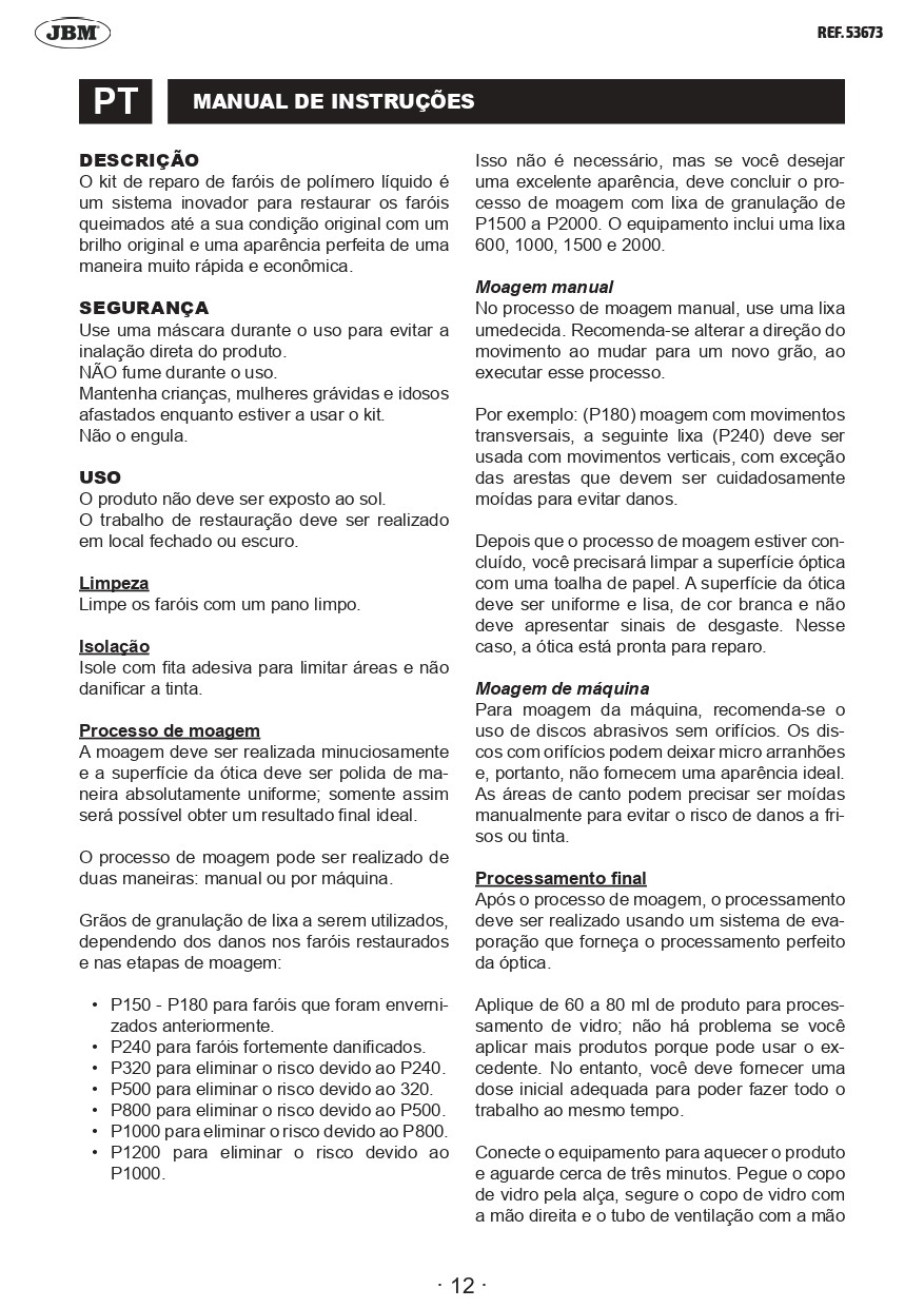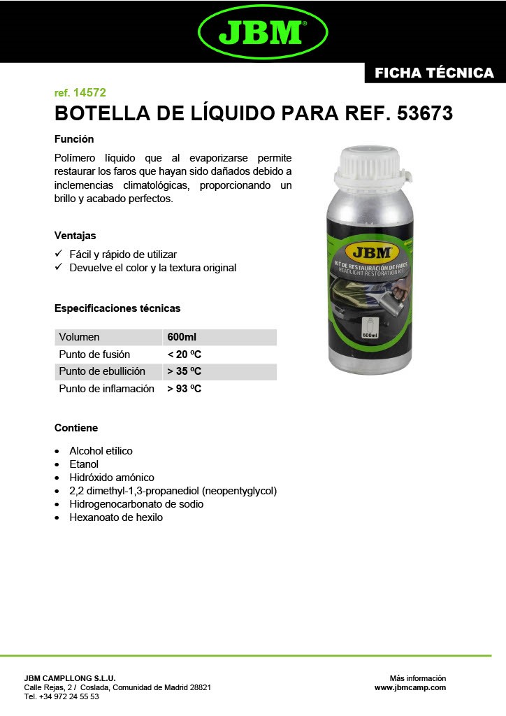 Liquido para restauração de faróis 600ml JBM | 15375