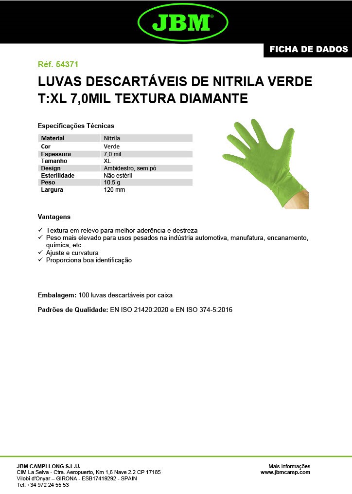 LUVAS DE NITRILO VERDES XL - OFICINAS AUTO - 54371