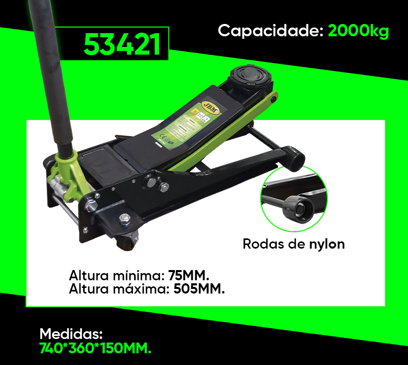 Macaco Hidráulico 2T Especial Carros Baixos Pistão Duplo 53421