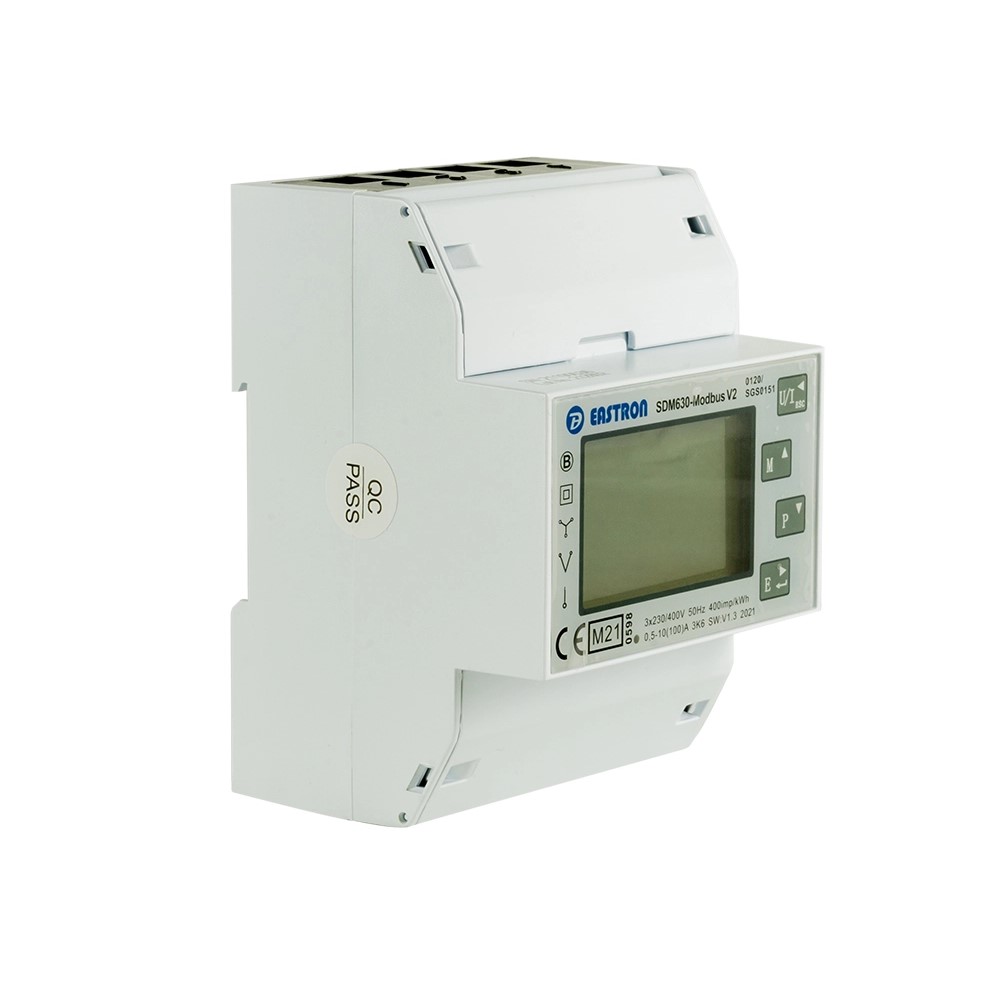 Medidor elétrico digital branco EASTRON SDM630-Modbus V2 com visor LCD