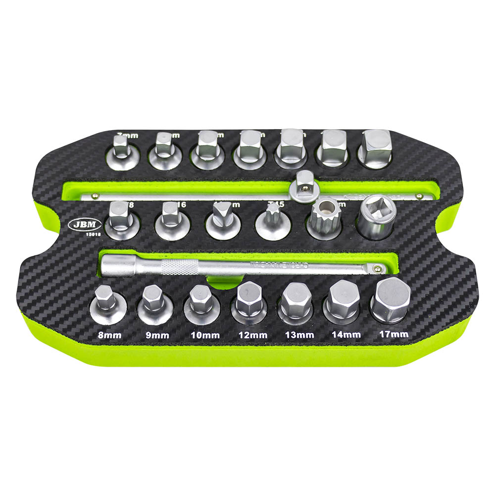 Conjunto de ferramentas JBM com chaves de soquete em base preta e verde