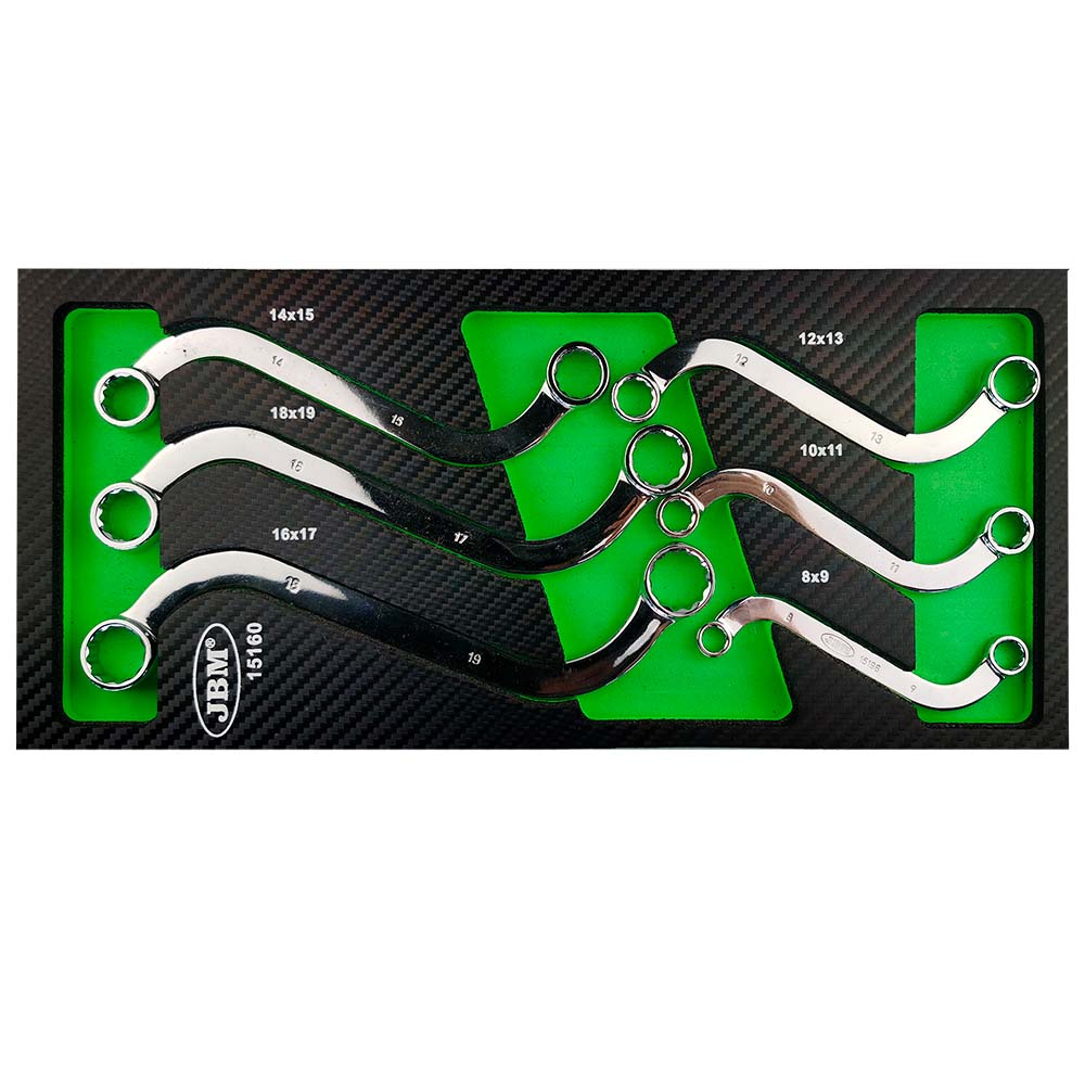 Conjunto de chaves combinadas JBM em suporte preto com fundo verde