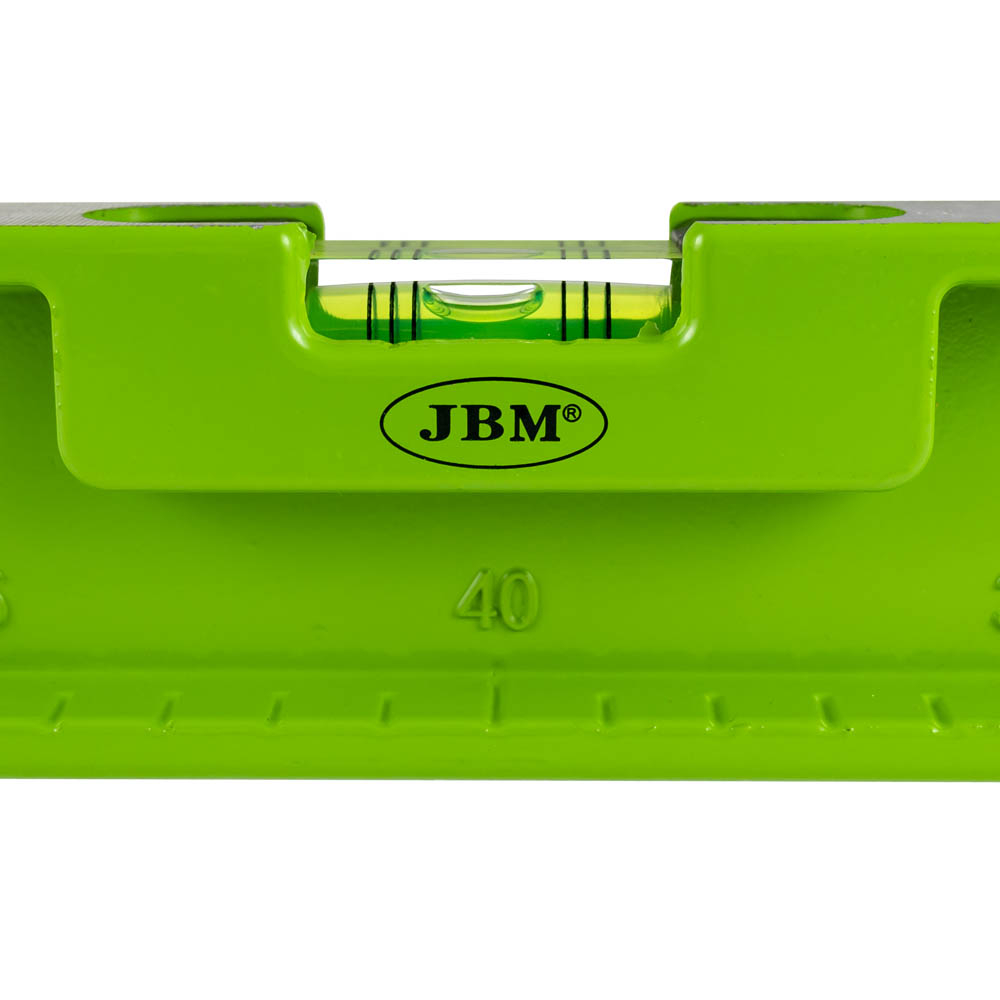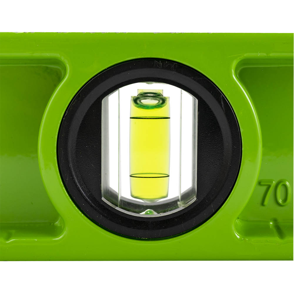 Nível de bolha verde de plástico com visor circular e aberturas retangulares