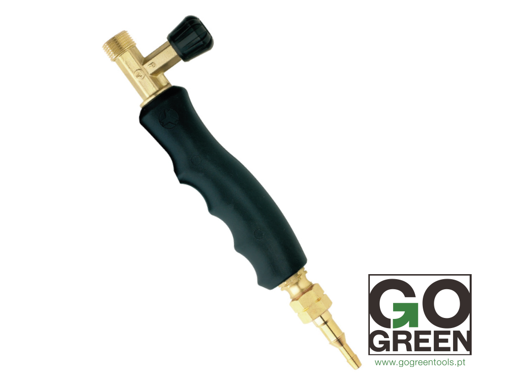 Punho de ferramentas preto e dourado com válvula e logotipo GO GREEN
