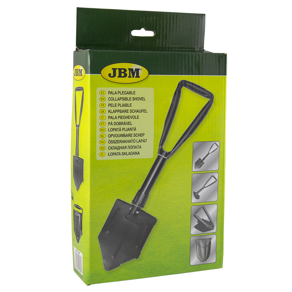 Embalagem verde de pá plegável preta JBM com imagens do produto