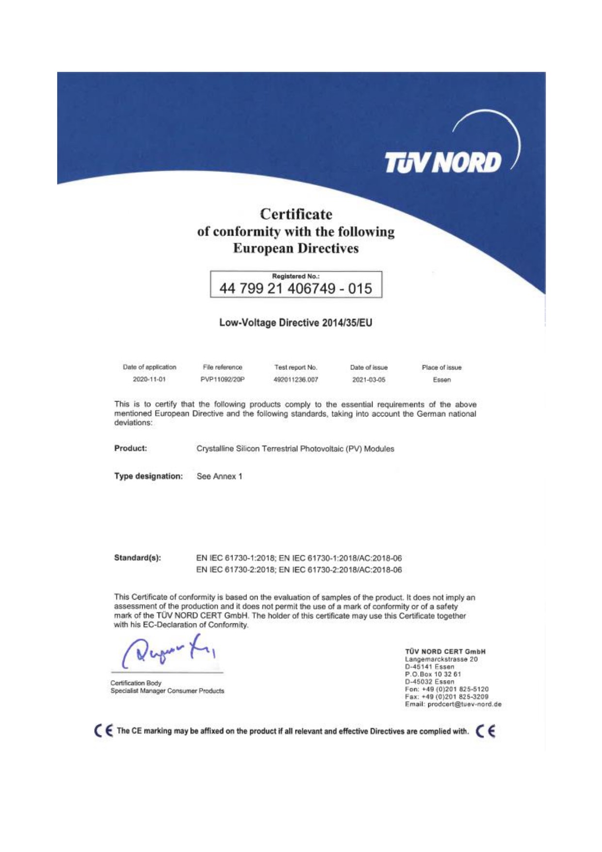Máx. tensão do sistema: 1000 V/1500 V CC