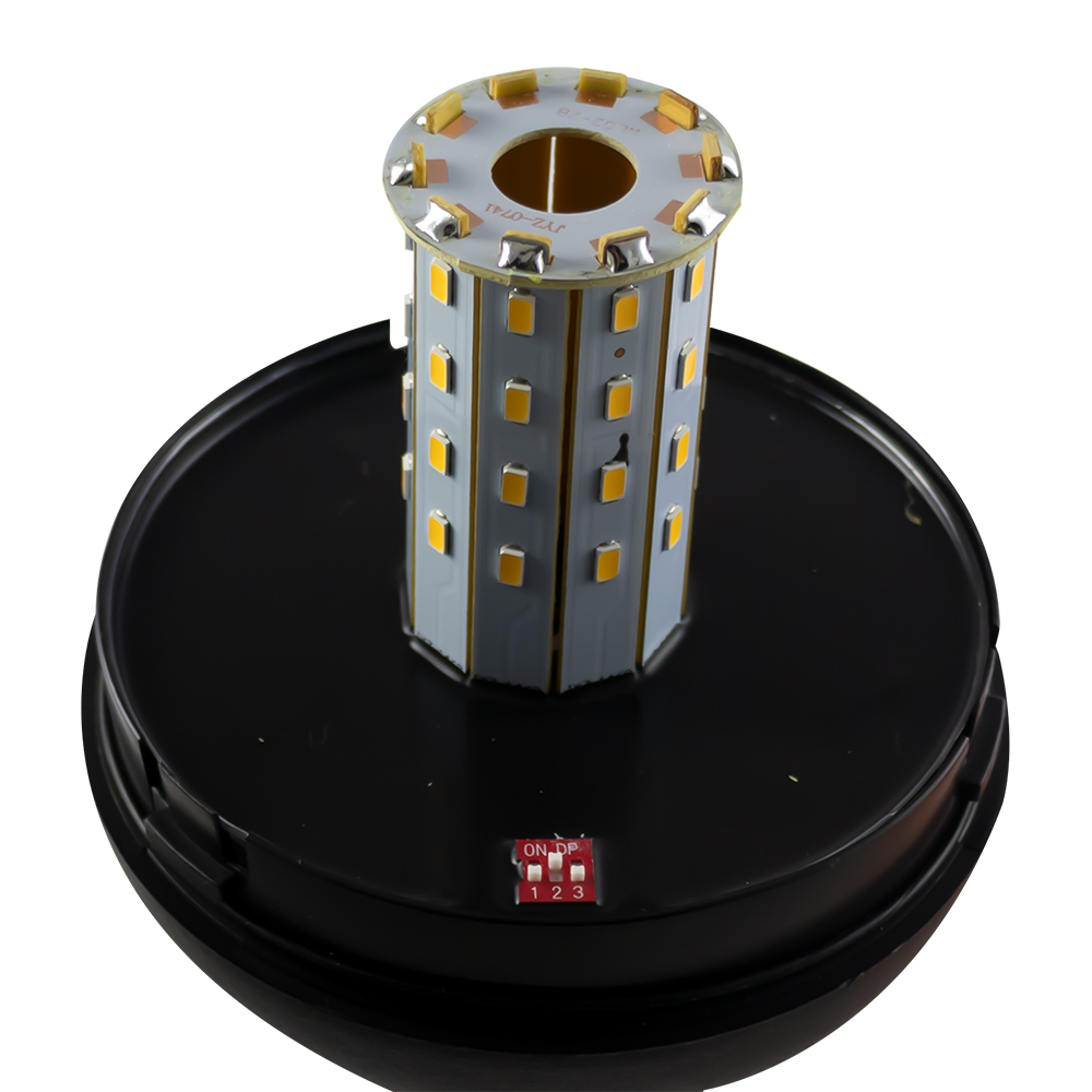 Luz de aviso laranja com base preta e parafuso metálico
