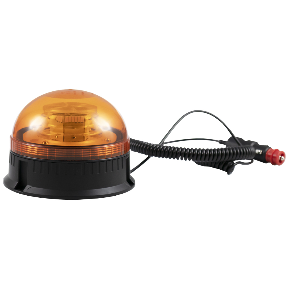 Luz rotativa de emergência amarela com base preta e cabo preto