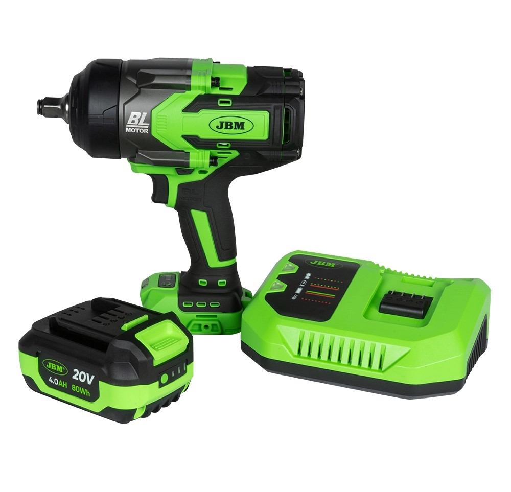 PISTOLA DE IMPACTO A BATERIA DE 1/2" Função Esta ferramenta foi projetada para apertar e desapertar parafusos e nozes que requerem exercer uma alta Torque. Vem equipado com uma luz LED de trabalho e um seletor de sentido de rotação que também permite bloqueie o gatilho e evite um início acidental do ferramenta. Possui 5 marchas diferentes, 3 para apertar e 2 para afrouxar, permitindo ajustar a velocidade dependendo da operação que você vai realizar. Além disso, graças ao seu cabo ergonômico, consegue-se maior aderência e precisão. Vantagens ✓ Luz ✓ Motor sem escova As especificações técnicas Dimensões da armação 1/2" (12,7 mm) Velocidade nominal 1000/1350/1600 RPM Frequência de impacto 1000/1600/2000 IPM Torque máximo 650/800/1200NM Potência 1000W Voltagem 20V Motor sem escova sim Nº de engrenagens (apertar) 3 Nº de marchas (afrouxar) 2 Peso 2,8kg