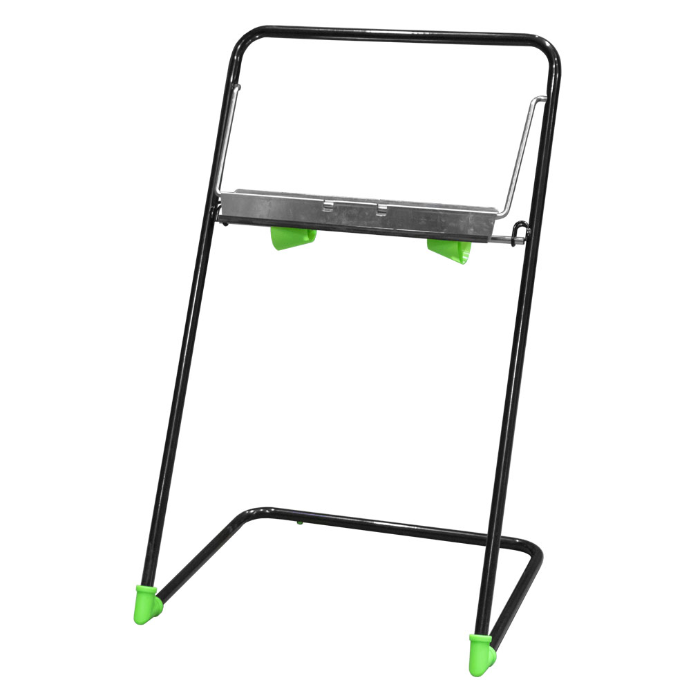 Suporte metálico e plástico preto com detalhes verdes para máquina de lavar roupa