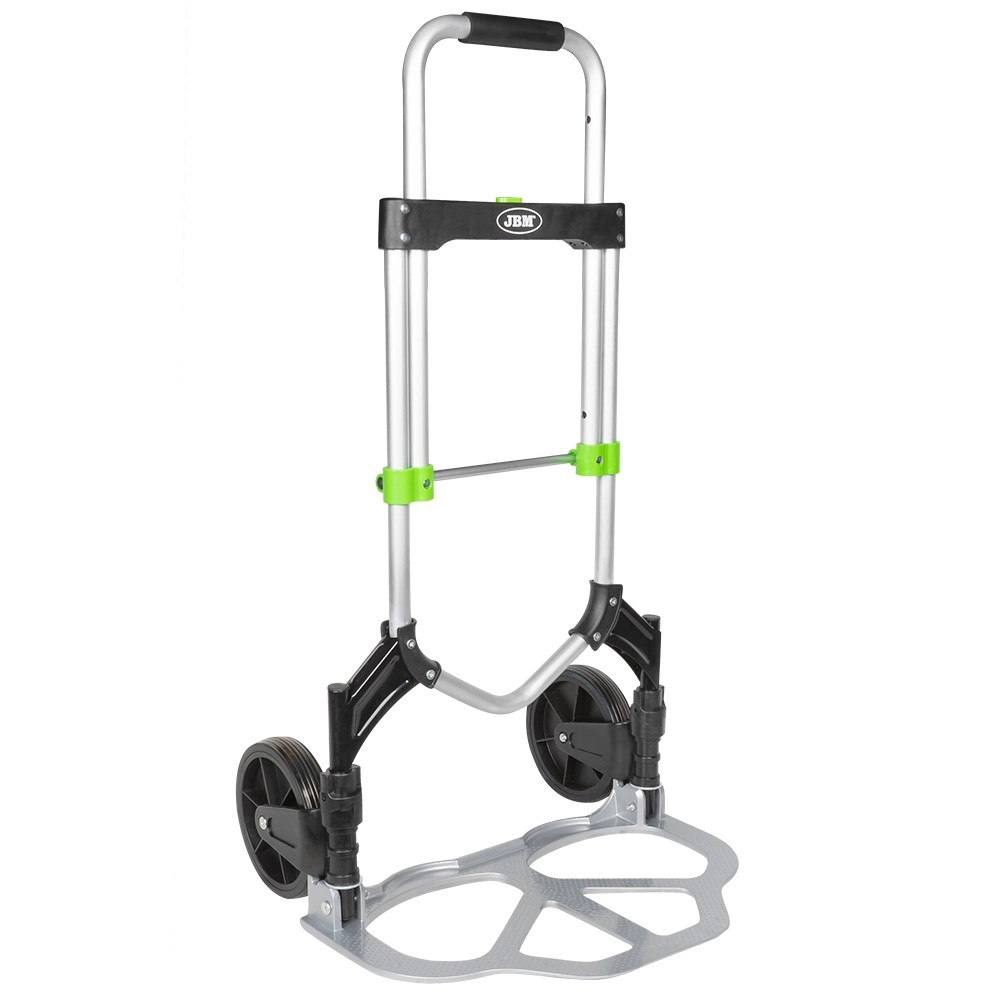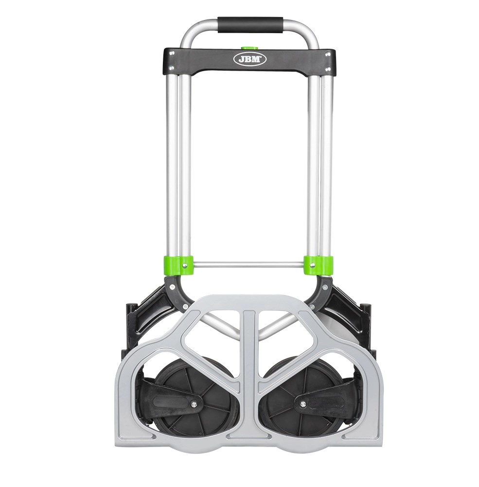 Carrinho de transporte dobrável com rodas grandes e detalhes verdes e pretas