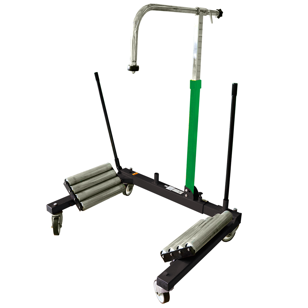Capacidade: 1.5T Faixa de levantamento: 0-770mm Comprimento total: 1270mm Largura geral: 990mm Altura total : 1340mm Diâmetro máximo da roda: 2200mm (86 ”) Diâmetro mínimo da roda: 1000mm (39”) Largura máxima da roda: 800mm Peso: 120kgs Rodas forradas a PU de alta resistência que evitam marcas no solo. Gancho superior para segurar a roda durante o transporte.