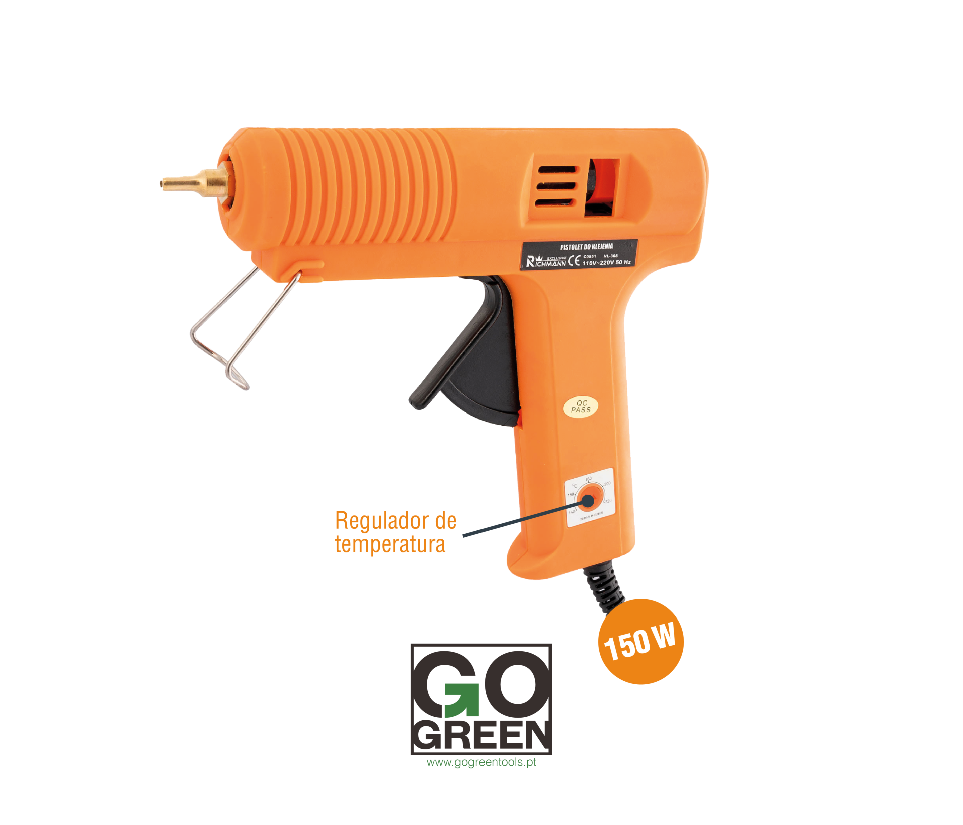 Tipo: Pistola de cola Diâmetro do cartucho [mm]: 11 Faixa de temperatura [°C]: 140/160/180/200/220 Tensão de alimentação [V]: 230 Frequência nominal [Hz]: 50 Comprimento do cabo [m]: 1,5 Dimensões [mm]: 195 x 160 x 40 Peso [kg]: 0,225