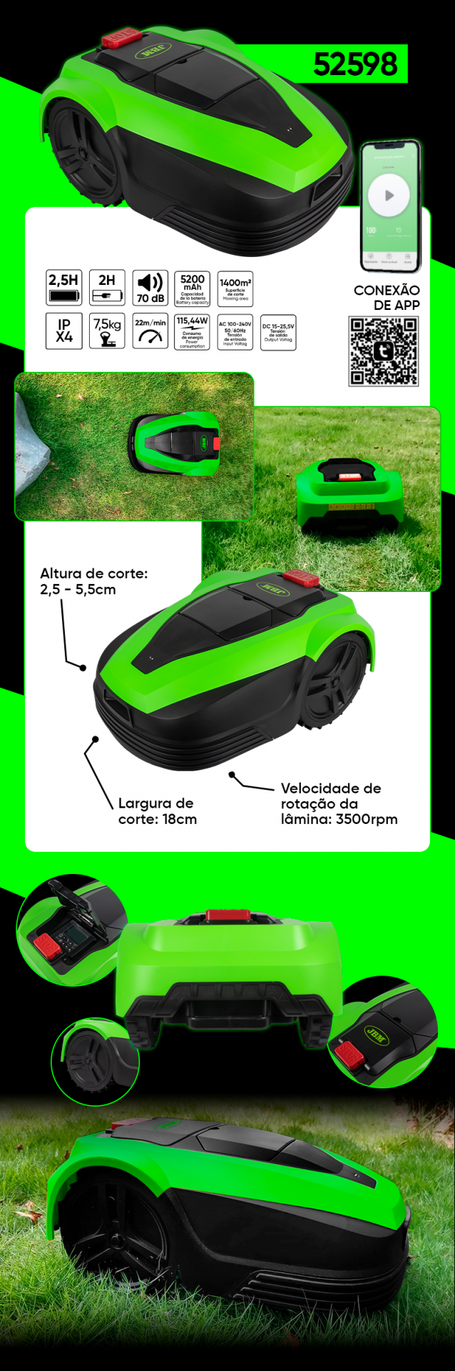 corte : 18 cm - Velocidade de giro da lâmina: 3500 rpm -