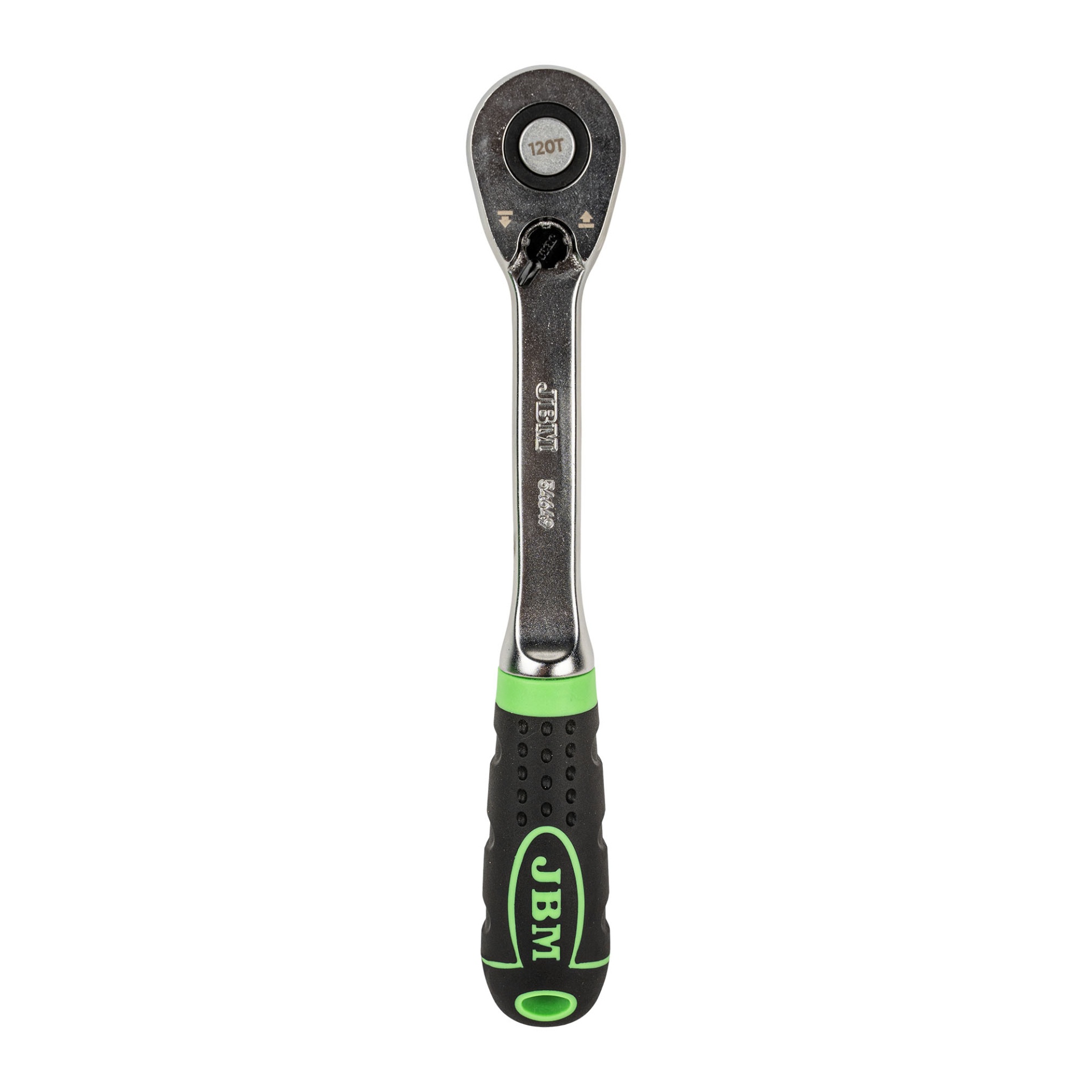 O JBM 54649 redefine o que se espera de um roquete de $\frac{1}{2}"$. Construído para suportar um binário impressionante de até 900 Nm, esta ferramenta permite aplicar forças elevadas que normalmente danificariam mecanismos de roquete comuns. O seu grande diferencial é a cabeça de 120 dentes, que oferece um ângulo de recuperação de apenas 3°, tornando-o imbatível para trabalhar em compartimentos de motor onde quase não há espaço para mover a mão.