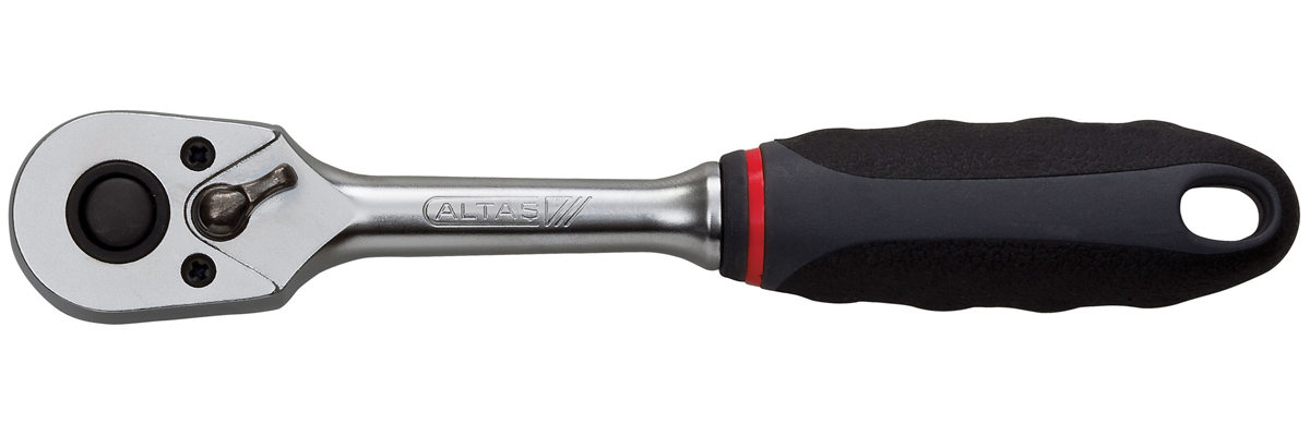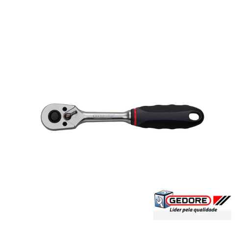 Chave de catraca metálica com punho preto e detalhes vermelhos, logótipo Gedore