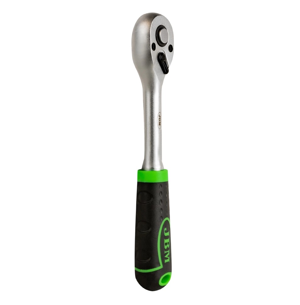 Chave catraca com cabo preto e verde e corpo metálico prateado