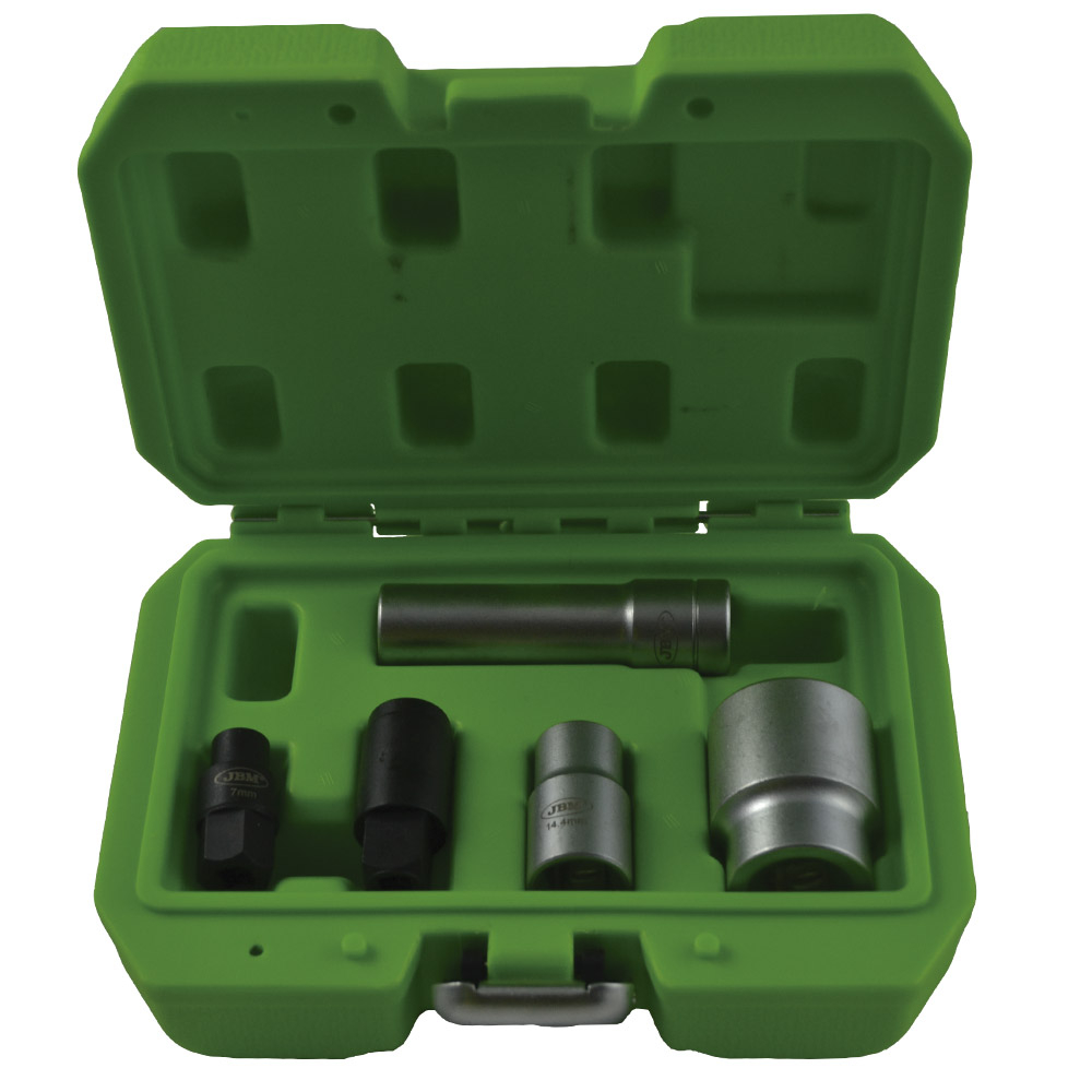Conjunto de 5 soquetes JBM com caixa plástica verde.