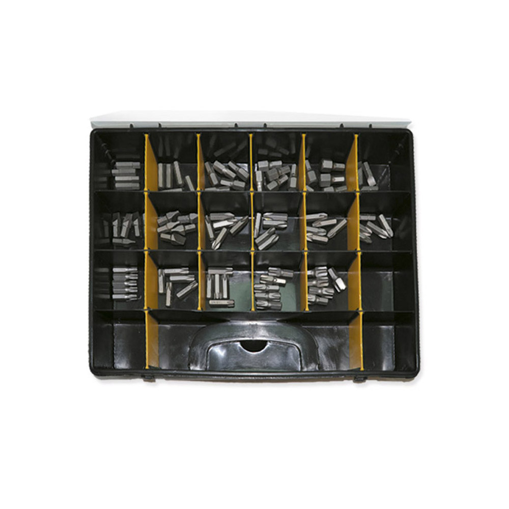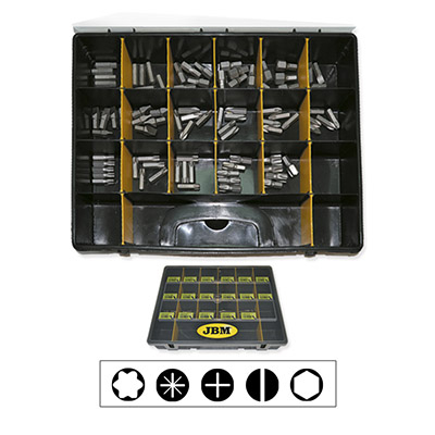 Conjunto de adaptadores de pontas metálicas em caixa organizadora JBM preta e amarela