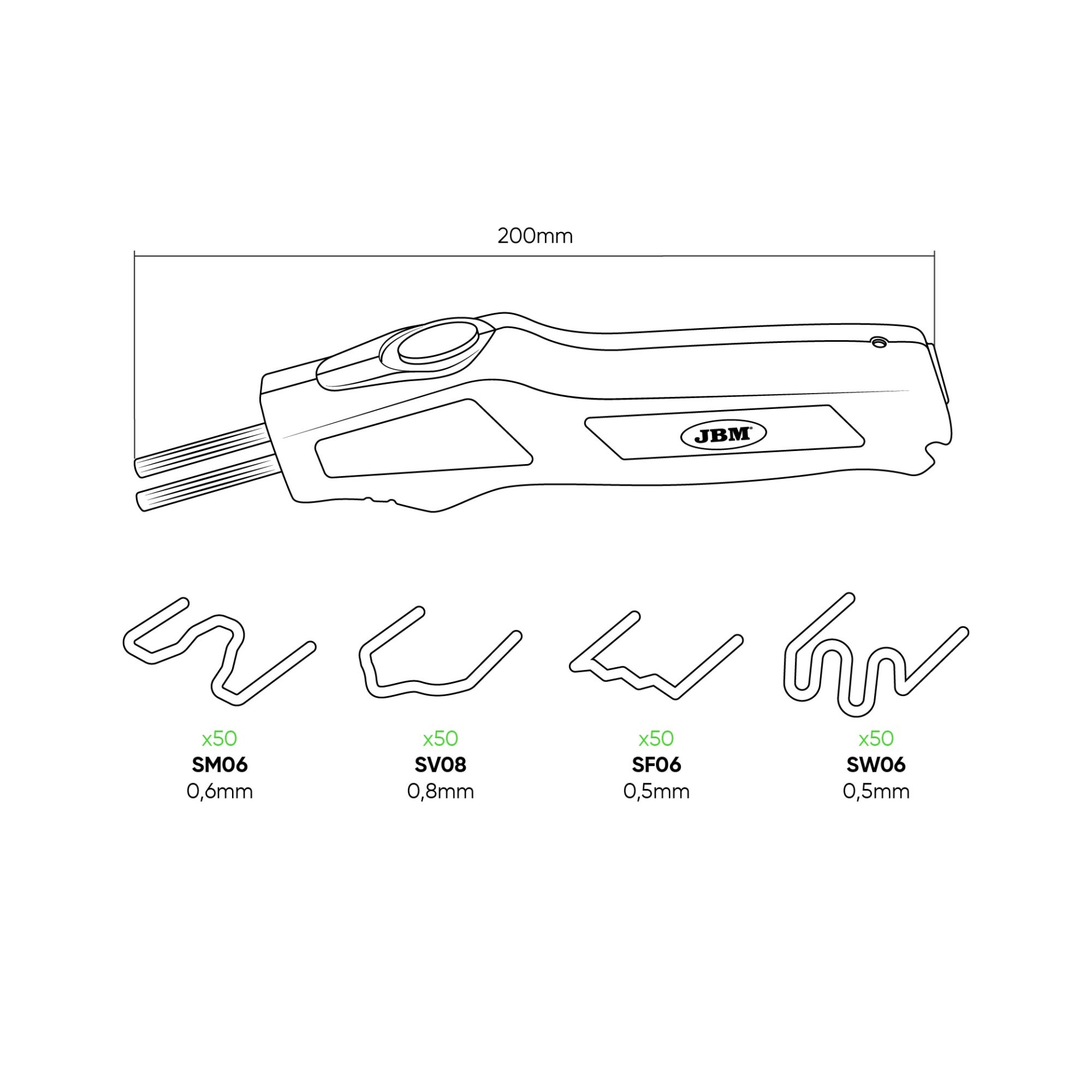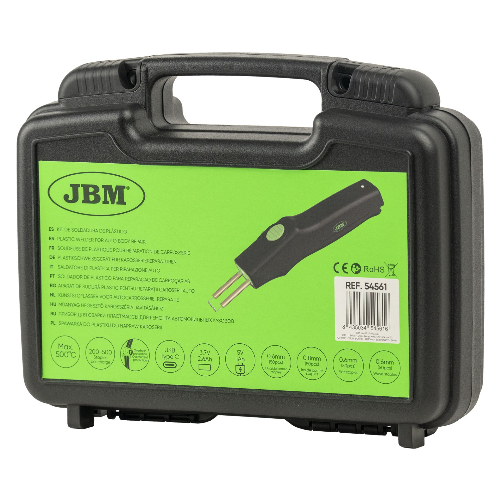 O JBM 54561 é uma ferramenta profissional essencial para a reparação de componentes plásticos de carroçaria. Através de um sistema de aquecimento instantâneo, este soldador funde agrafos de aço inoxidável diretamente no plástico partido, criando uma "ponte" de alta resistência que une as partes separadas. É o método ideal para reparar fendas em para-choques, suportes de faróis partidos e interiores de portas, mantendo a flexibilidade original do componente.