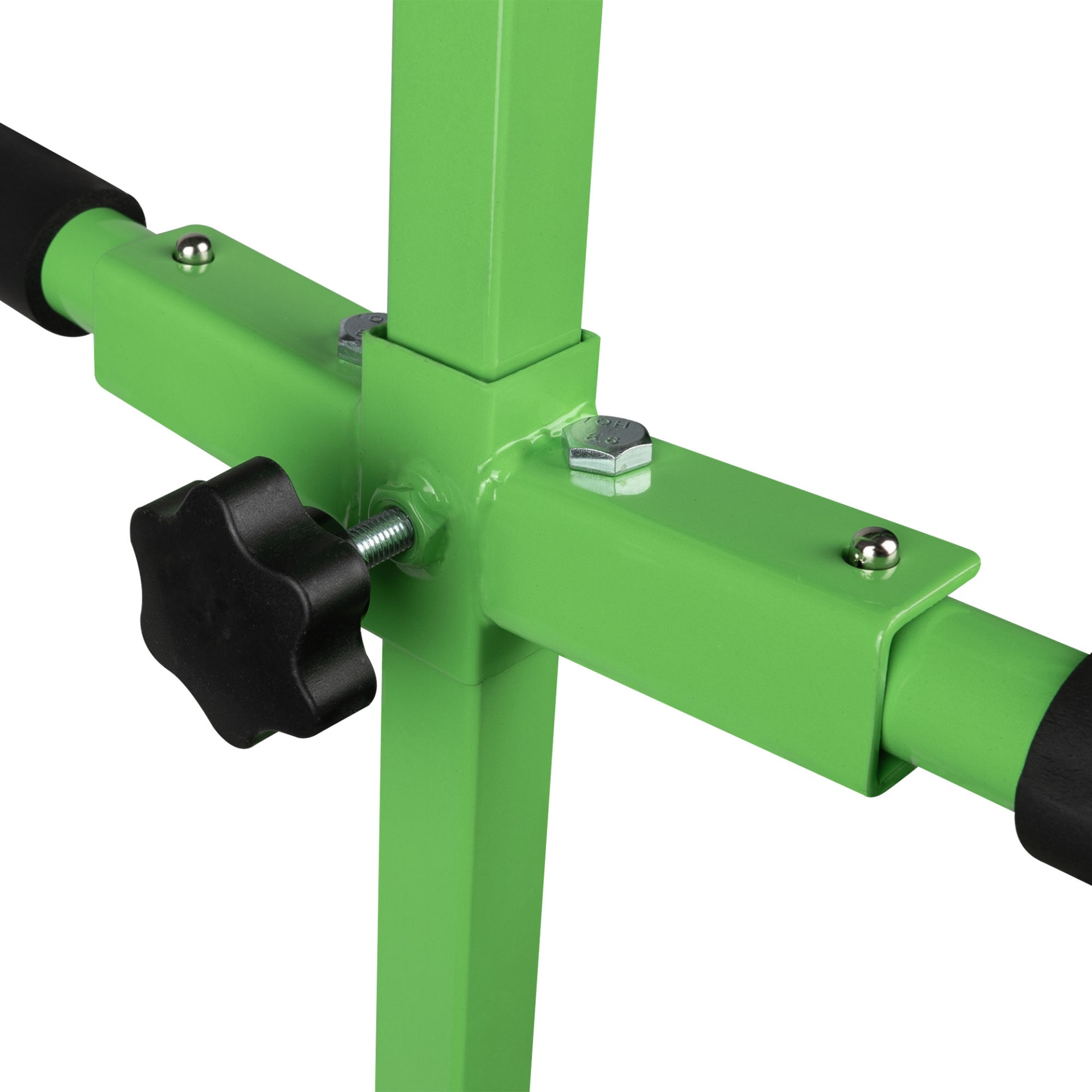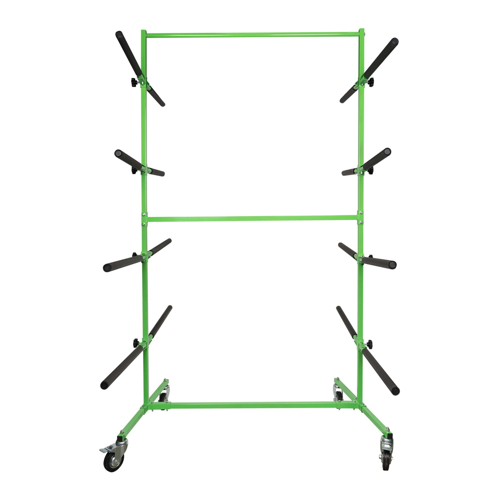 Estante móvel de dupla face para carregamento e armazenamento de para-choques. O seu design compacto com 8 pares de suportes de espuma reguláveis em altura e rodízios com travão tornam-na uma escolha muito versátil para a oficina.