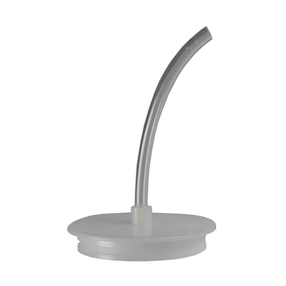 Tampa plástica branca com tubo flexível transparente curvado
