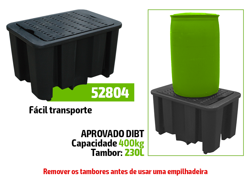 - Fácil transporte. Para uso com a maioria das empilhadeiras. Não é adequado para porta-paletes.