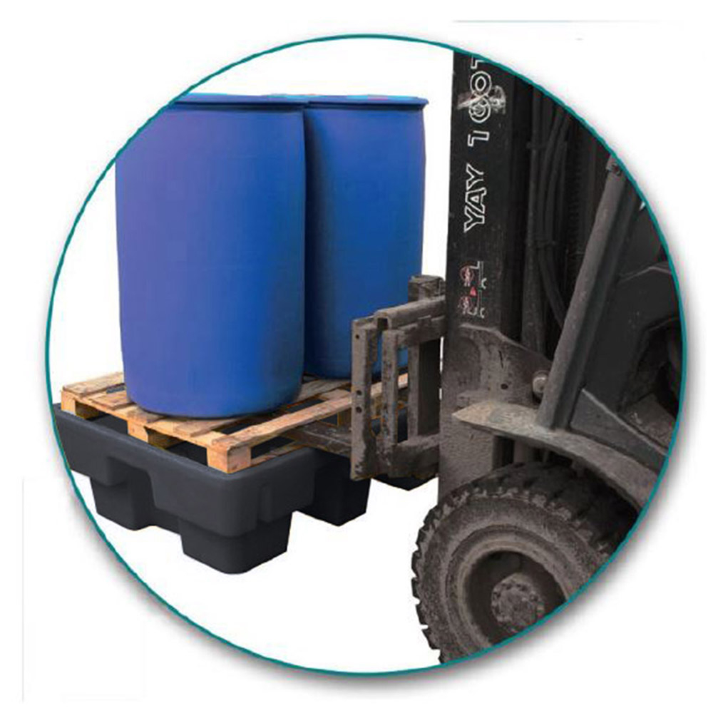Para 2 tambores Compatível com europaletes (1200 mm x 800 mm) e paletes de plástico com dimensões semelhantes. Empilhável para transporte e armazenamento econômicos. O europalette pode ser colocado diretamente no topo da bandeja para reduzir custos. Os paletes carregados podem ser colocados / removidos da caçamba com ou sem o rack por empilhadeira. Balde com baixa altura ideal para trabalho. Capacidade online ou acima dos padrões europeus, britânicos e americanos? Pode ser manuseado por empilhadeira de 4 lados ou porta-paletes de 2 lados quando vazio. Fabricado em polietileno - 100% reciclável.