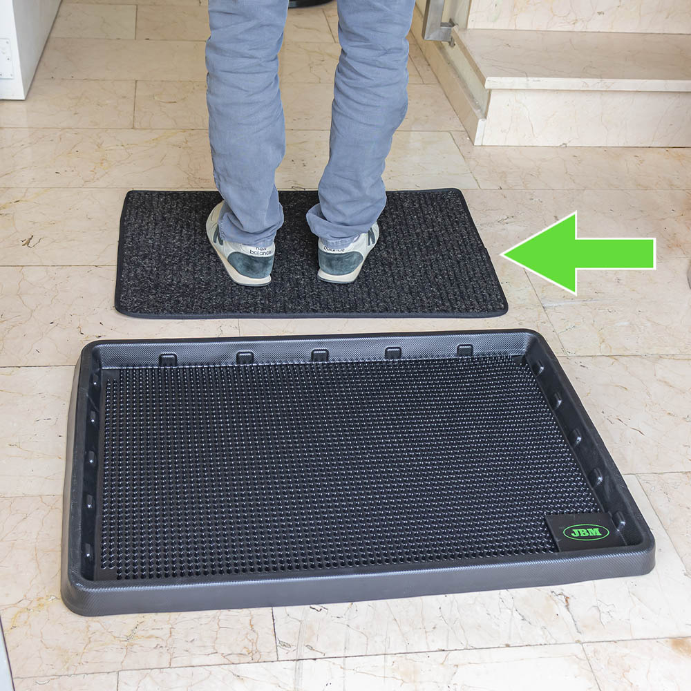Suas arestas evitam tropeçar ao entrar e sair do tapete