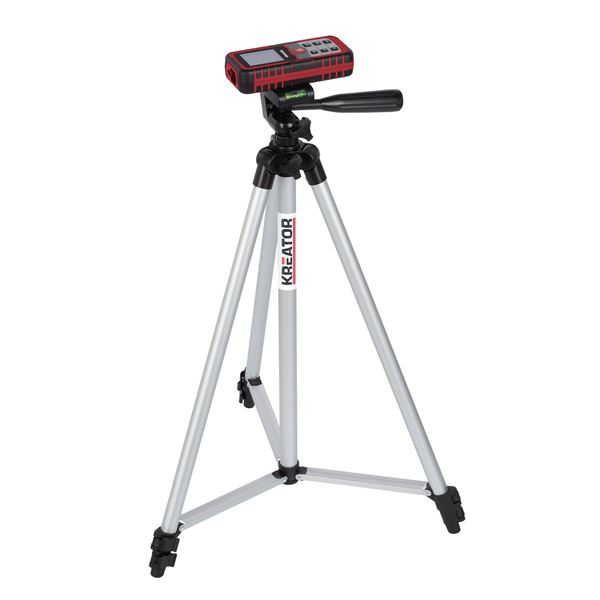 Meça com precisão grandes distâncias e áreas com este telêmetro a laser Kreator. Ele pode calcular distâncias de até 60 m com uma precisão de 2 mm e indica o ângulo em que você está trabalhando. Isso significa que você pode trabalhar sempre nivelado, o que é conveniente para medições de ângulos complexas.