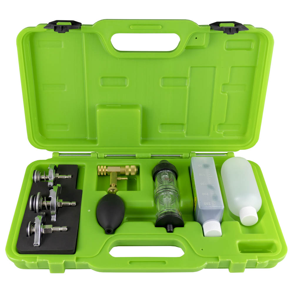 Kit Completo: Inclui o recipiente de teste de câmara dupla (para evitar falsos positivos por salpicos de anticongelante), pera de sucção e adaptadores universais.
