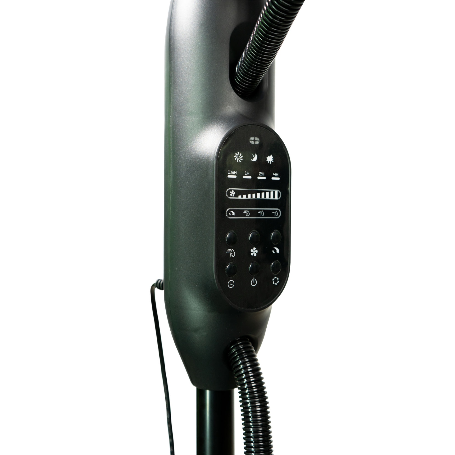 Dispositivo concebido para dispersar o ar e pulverizar água, criando uma névoa fresca e refrescante. Montagem sobre rodas, com controlo remoto e vários modos de funcionamento. Especificações técnicas: